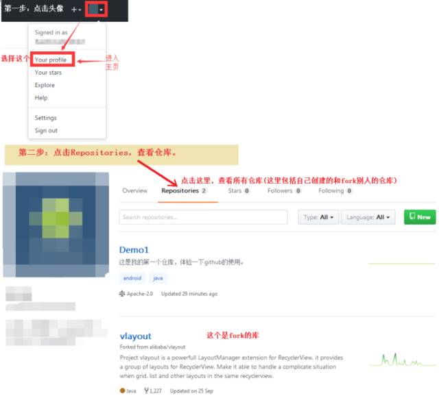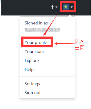 2. 点击右上角的头像 --> 选择 your profile --> 进入主页,其他的和 方法1 一样的。