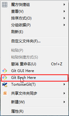 (3)在电脑上某一个英文路径下,右键-->选择Git Bash Here,然后命令行就弹出来了。