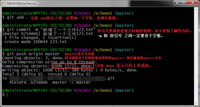 git commit -m "新增了一个文件123.txt" 回车(提交更新信息)